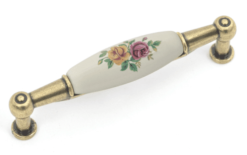 ידית דגם W8530 מידה 96מ”מ פליז עתיק + פורצלן ורוד צהוב