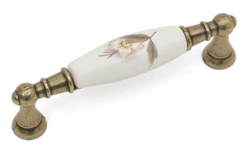 ידית דגם 8556 מידה 96 מ”מ פליז עתיק + פוצלן פרח חום