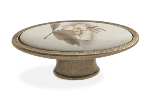 כפתור אובלי דגם 8602 פליז עתיק+פורצלן פרח חום
