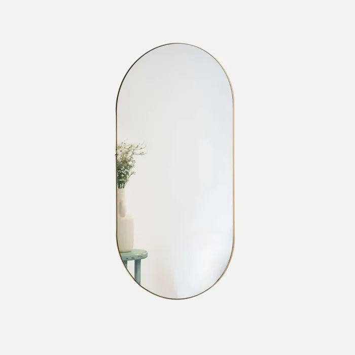 מראת קפסולה אובלית עם מסגרת מתכת זהב מוברש