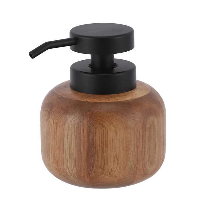 דיספנסר מונח לחדרי רחצה, בשילוב שחור ועץ.